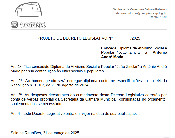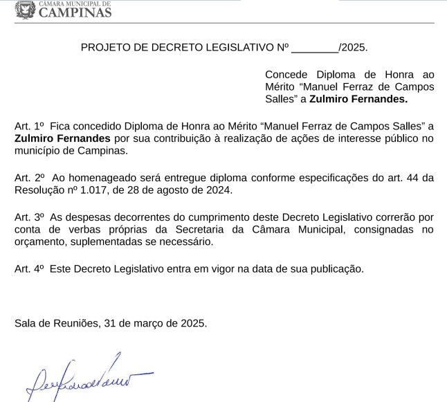 ajudas, e já são dignas de que a Câmara Municipal de Campinas, através de seus Vereadores