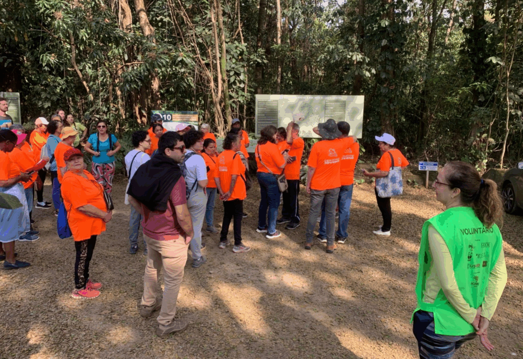 A atividade, voltada à promoção da saúde e do bem-estar em contato com a natureza, incluiu momentos de conhecimento sobre a história da mata, observação da rica biodiversidade local, trilhas que levam ao riacho da Sanã e ao Borboletário, além de um piquenique de confraternização ao final.