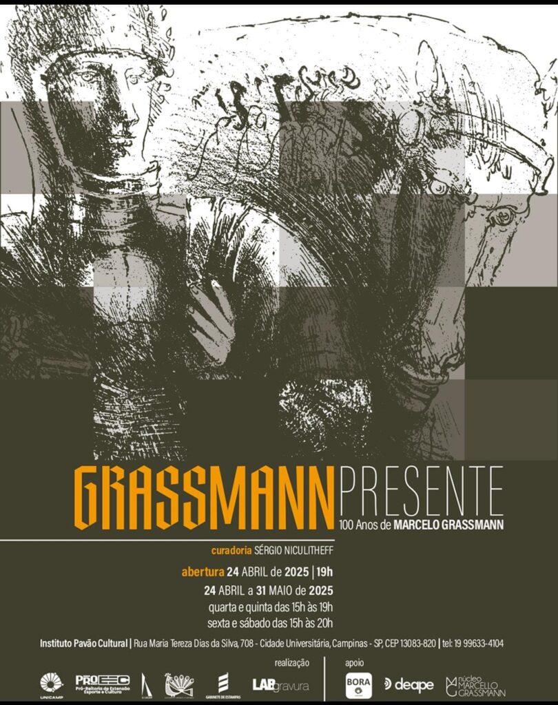 O Instituto Pavão Cultural abriu nesta quinta , 24/4 a mostra “GRASSMANN PRESENTE – 100 ANOS DE MARCELO GRASSMANN” sobre o artista gráfico Marcelo Grassmann que estaria comemorando 100 anos este ano. E para celebrar foi elaborada uma extensa programação com a organização do Núcleo de Estudos Marcello Grassmann que preserva e divulga a obra do artista nascido em São Simão, no interior de São Paulo. A curadoria é do artista visual e professor Sérgio Niculitcheff e a organização fica por conta do Gabinete de Estampas da UNICAMP e do Instituto.
