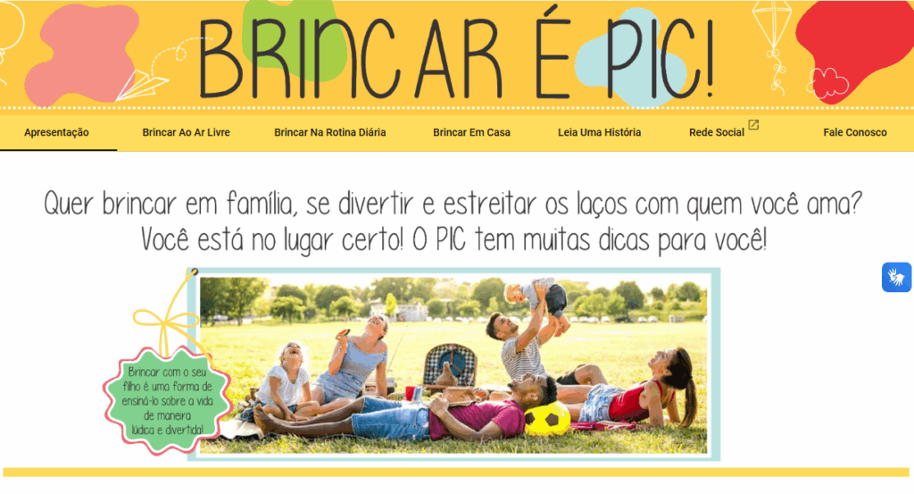 O site também dá dicas aos pais e cuidadores, de como desenvolver um ambiente, mesmo que dentro de casa, divertido e que incentive a prática de brincadeiras em família